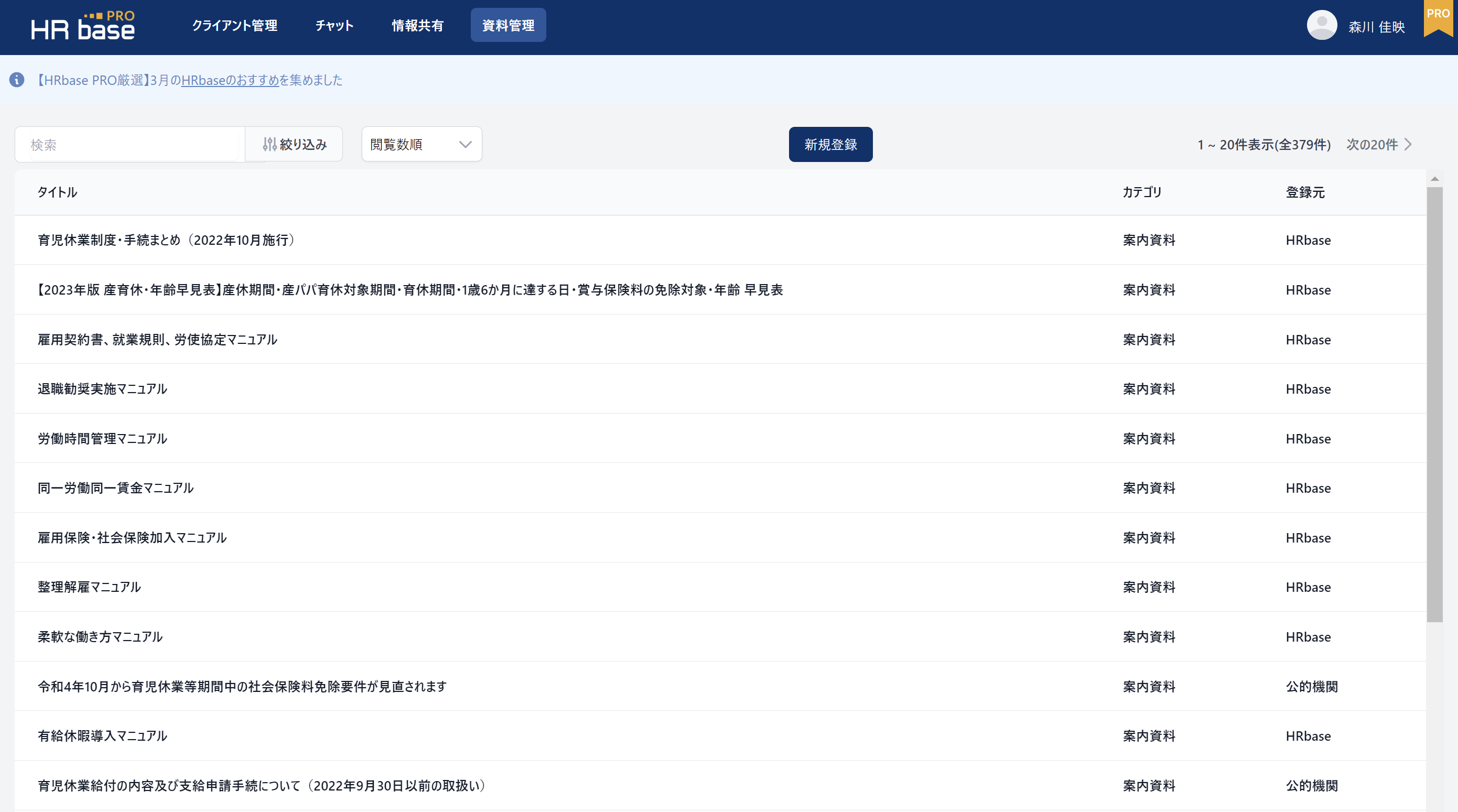 他のHRbasePROユーザーが多く見ている資料を上位に表示させる機能です。