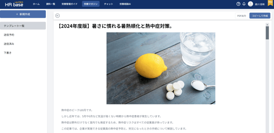 「労務マガジン」の機能は、HRbasePRO内に提供させていただいているメルマガ記事を、各事務所さまで登録している「クライアント」に対して簡単操作で配信ができる、というものです。