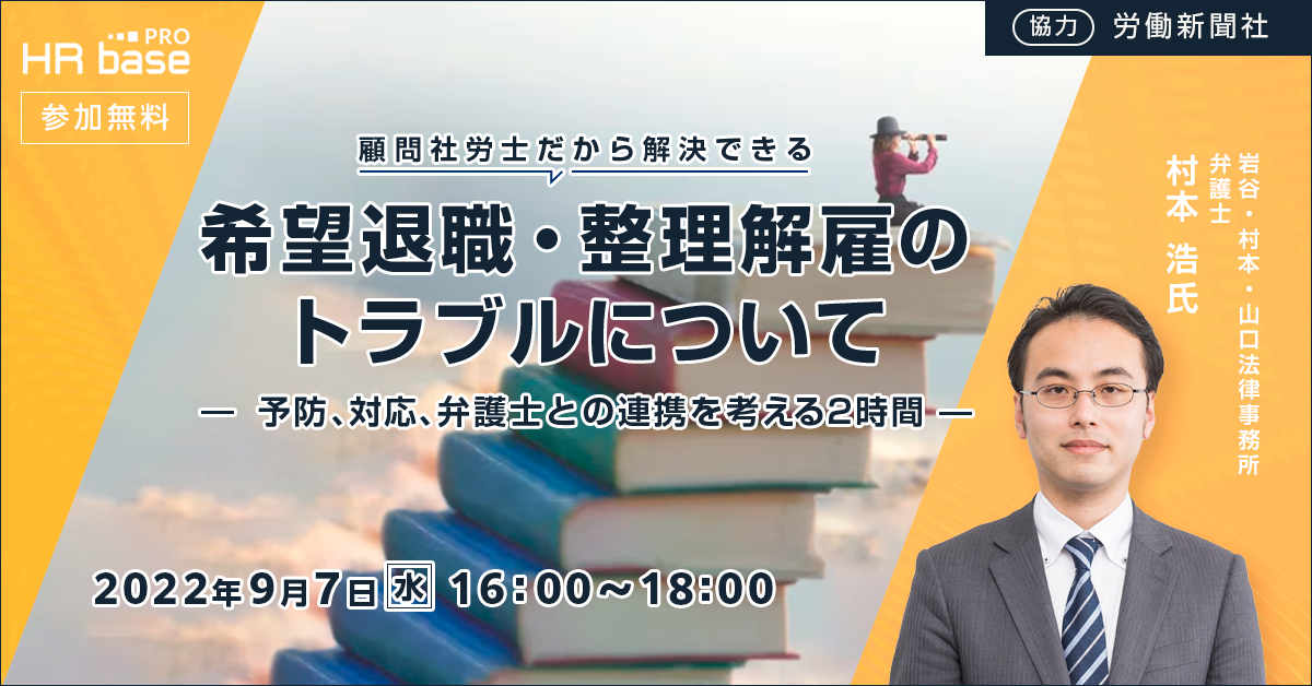 今回のセミナーでは、リストラ案件を含む労務トラブル解決の経験が豊富な村本浩弁護士をお迎えし、リストラ案件を進めるときのポイントと、弁護士との的確な連携方法などを解説いただいています。