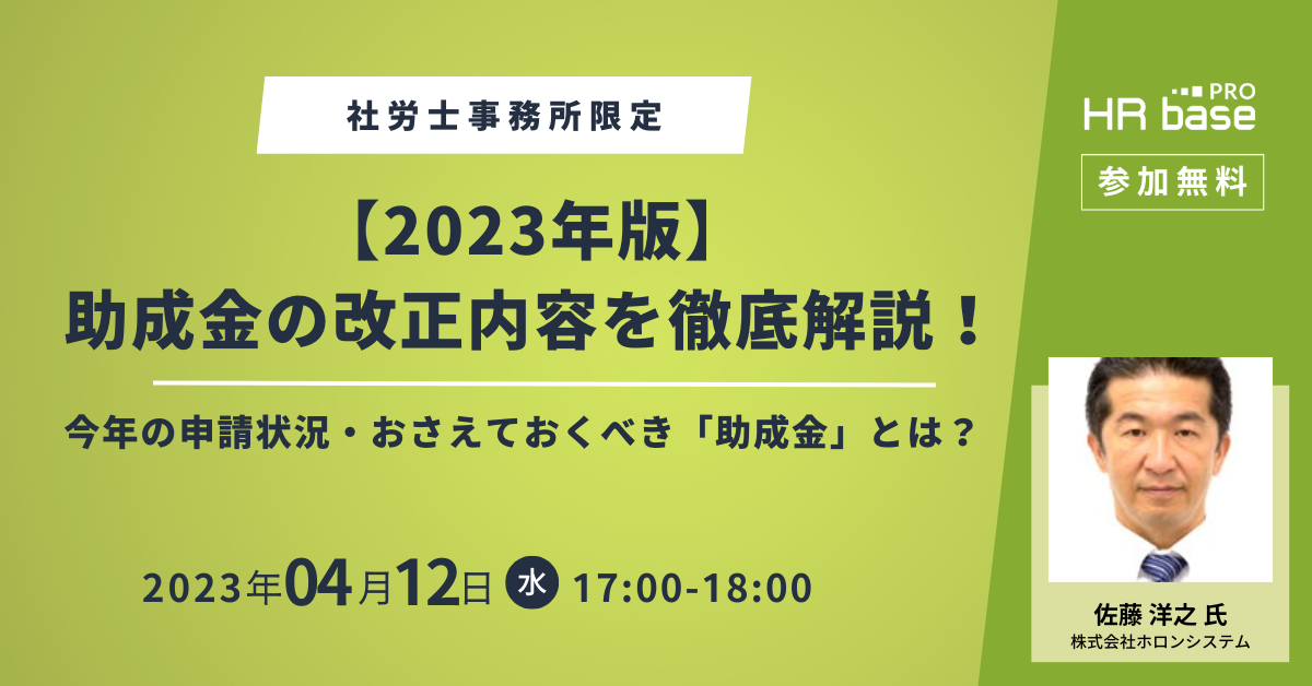 本セミナーでは、助成金クラウドを取り扱う株式会社ホロンシステムより佐藤洋之氏をお招きし、「2023年助成金受給条件の改正内容」「2023年から始まる電子申請」といった助成金の最新情報を中心に解説していただきます。