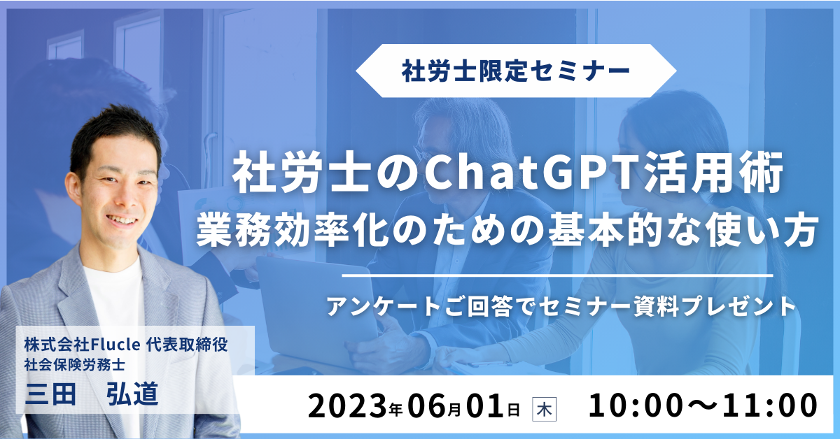 そこで今回は、弊社代表で社会保険労務士の三田より、ChatGPTの基本的な使い方、業務効率化のための活用方法、今後社労士として強化すべき業務について詳しくお話します。