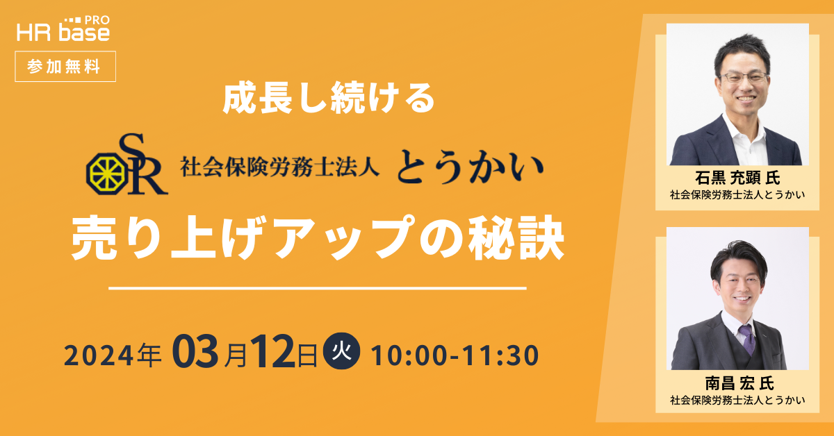 本セミナーでは、第1部で社会保険労務士法人とうかいの石黒氏より、社会保険労務士法人とうかいが売上を上げるために取り組んだこと、その詳細についてお話しいただきます。第2部では、同じく社会保険労務士法人とうかいの南氏より、現在企業が注目する「企業型DC」の支援を活用した売り上げアップノウハウについてお話しいただきます。
