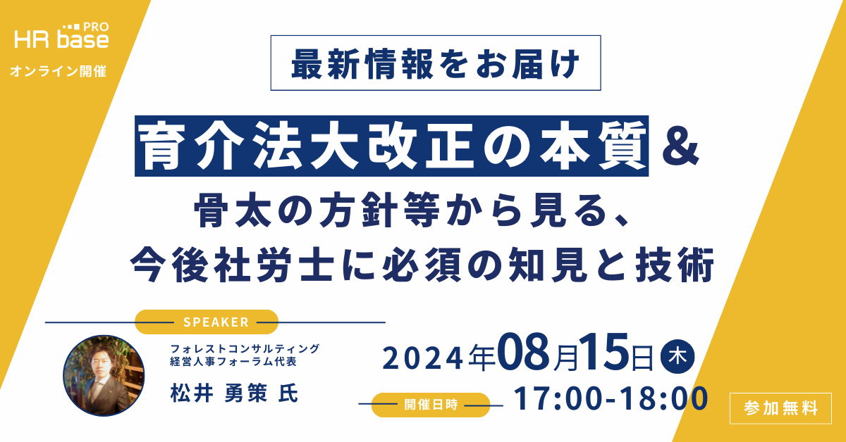 本セミナーでは法改正の要件にも触れつつ、改正の趣旨や中長期の政策の視点から見る「育介法改正の本質」と必須の対応手法などについてお話いたします。