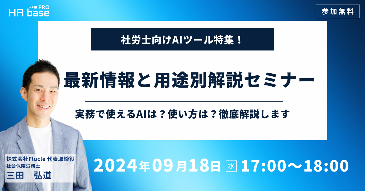 本セミナーでは、社労士向けAIの開発者である三田より、最新のAI情報や業務内で使えるAIツール情報をお届けさせていただきます。